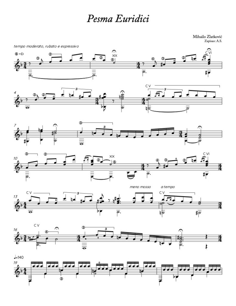 ПочетнаАуторске композиције Ауторске композиције Сазнај више Композиција Витешке игре Нотни запис композиције Витешке игре Преузмите нотни запис (ПДФ – 3,16 мегабајта) Ауторска композиција Посејдонов сан Студијски звучни снимак композиције Посејдонов сан у извођењу Михаила Златковића Нотни запис композиције Посејдонов сан (записао Александар Сарбић) Преузмите нотни запис (ПДФ – 66 килобајта) Нотни запис композиције Песма Еуридици (записао Александар Сарбић) Преузмите нотни запис (ПДФ – 79 килобајта)